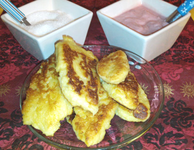 In eine geeignete Pfanne etwas Öl geben und von der Teigrolle Plätzchenstreifen abschneiden und goldgelb von beiden Seiten braten. Warm oder kalt, schmecken die Plätzchen z.B. mit Puderzucker,